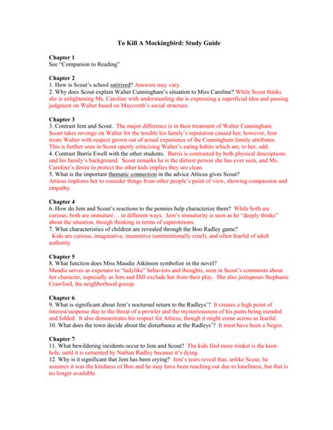 Read Tkam Reading Questions Answers Reader