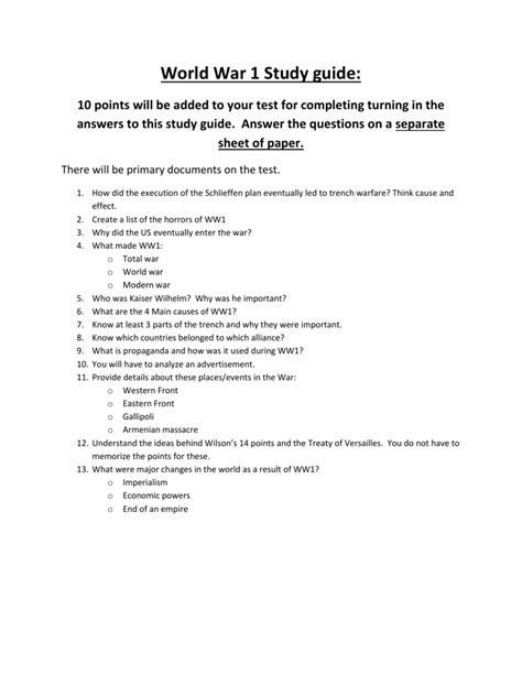 Read Online World War One Study Guide Answers Epub