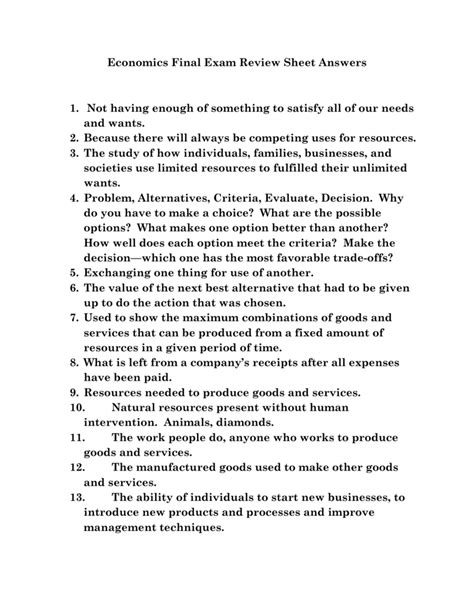 Download Economics Final Exam Review Answers 2013 Kindle Editon